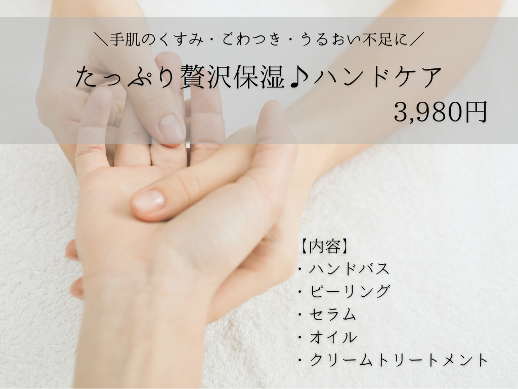 本格的な乾燥の季節がやってくる前にたっぷり保湿ケアしませんか?手肌のくすみ・ごわつき・うるおい不足が気になる方におすすめのメニューです♪