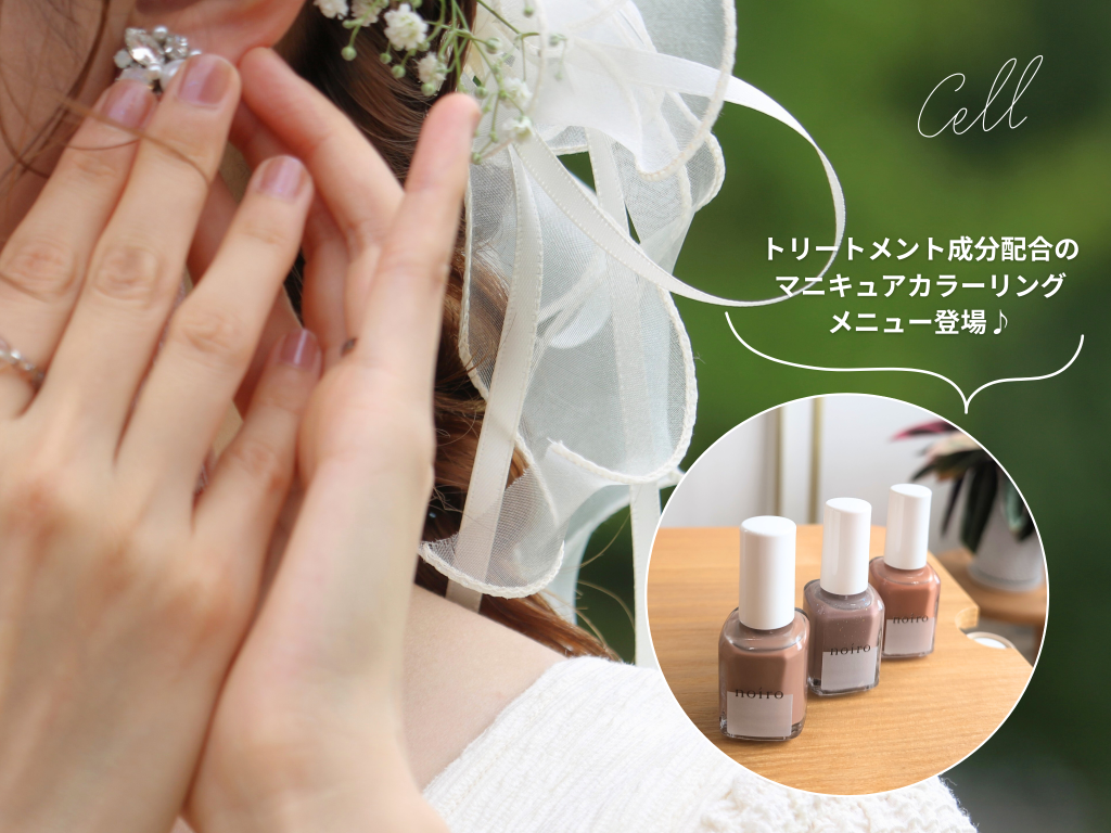 【カラーリング】秋の新作カラー3種からお選びいただけます。少しでも爪に負担を少なく、爪をいたわるトリートメント成分が配合されたネイルカラーを使ってカラーリングいたします。