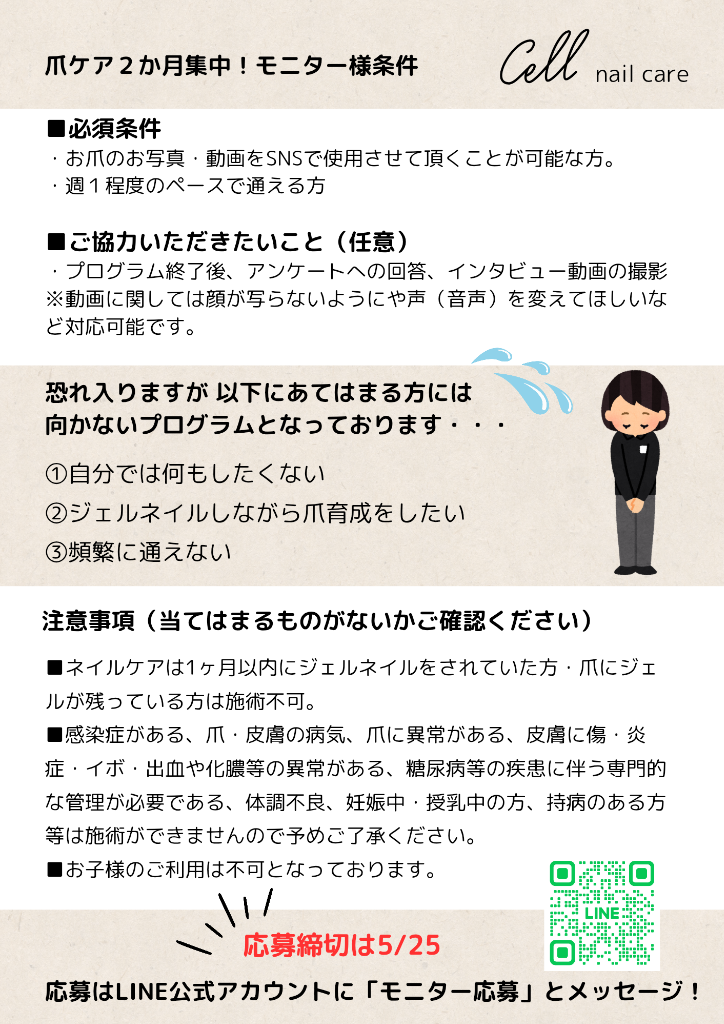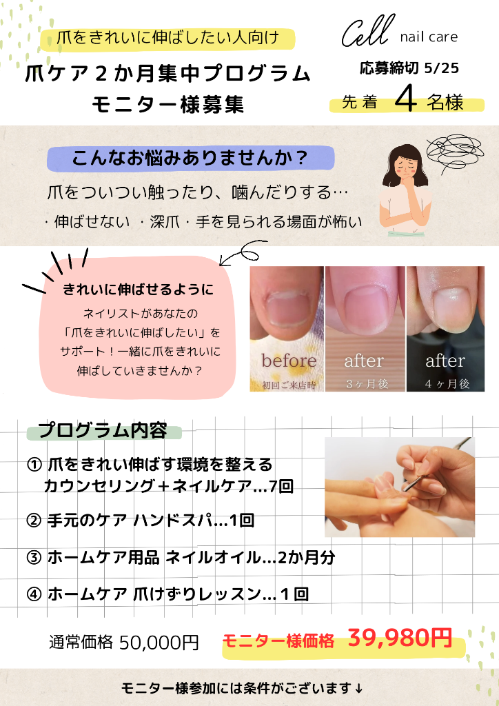 【深爪に悩む方必見!5/25締切】モニター様募集!