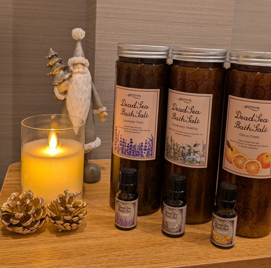 お湯に入れるバスソルトの香りが選べるようになりました!その日の気分でお好きな香りをお選びください♪