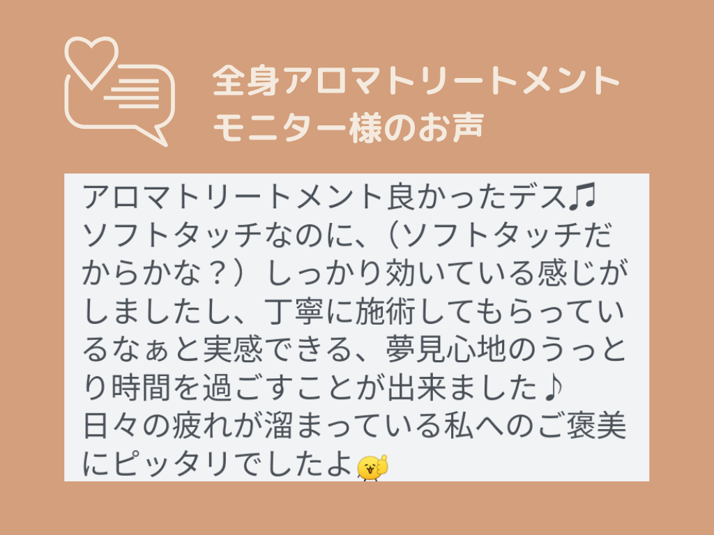 アロマトリートメントのモニター様より
