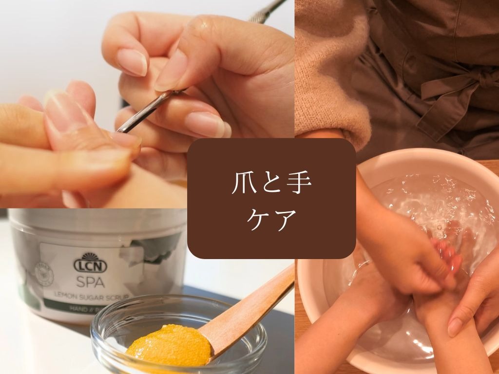 【内容】爪の長さ・形を整える→爪の余分な角質ケア→ハンドスクラブ→ハンドマッサージ